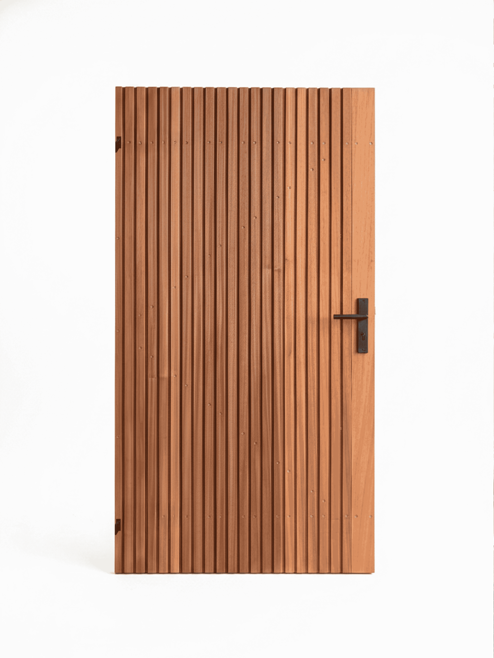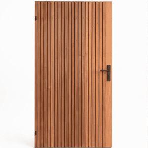 De deur is vervaardigd uit Ayous hout, een lichte en stabiele houtsoort die zich uitstekend leent voor buitentoepassingen. Dankzij de goede maatvastheid en bewerkbaarheid is Ayous bijzonder geschikt voor hoogwaardige buitendeuren. Het geïntegreerde stalen frame zorgt voor extra constructieve stevigheid en een strakke afwerking.