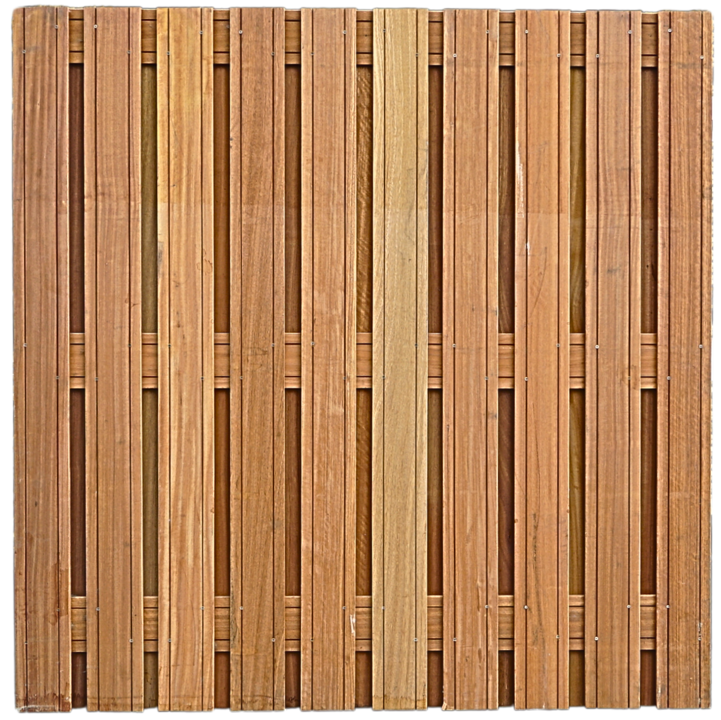 Bangkirai Tuinscherm Recht – 22 Planks (19 Verticaal / 3 Liggers) – RVS geschroefd