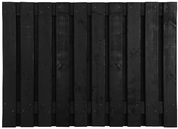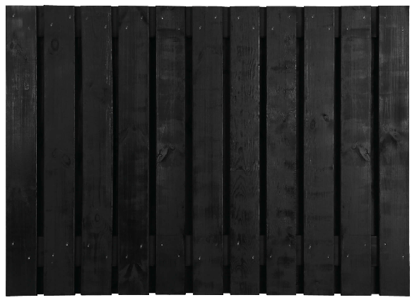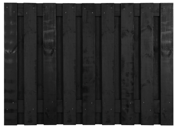 Zwart gedompeld grenen scherm van 90 cm hoog met geschaafde planken. Strak, stijlvol en onderhoudsarm.