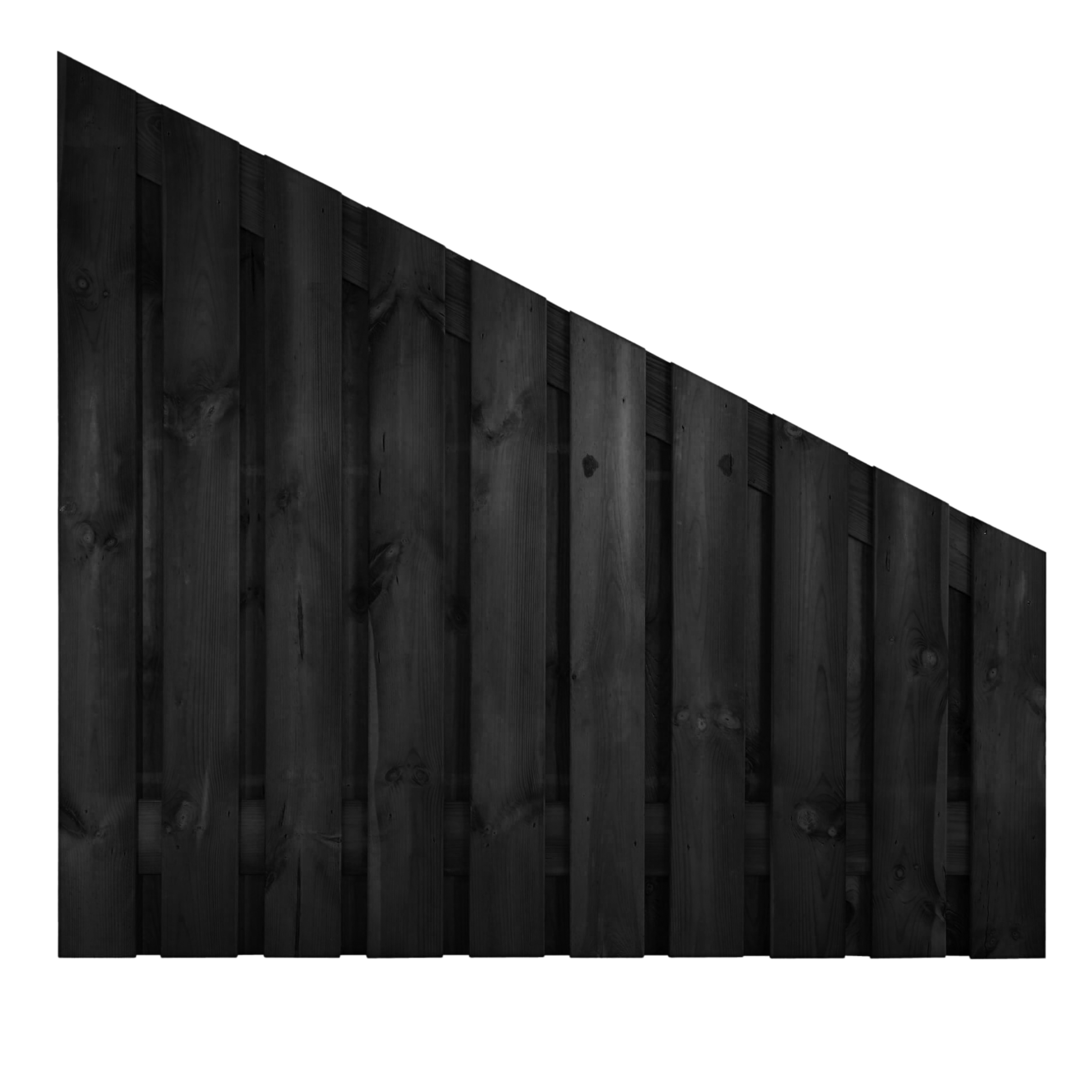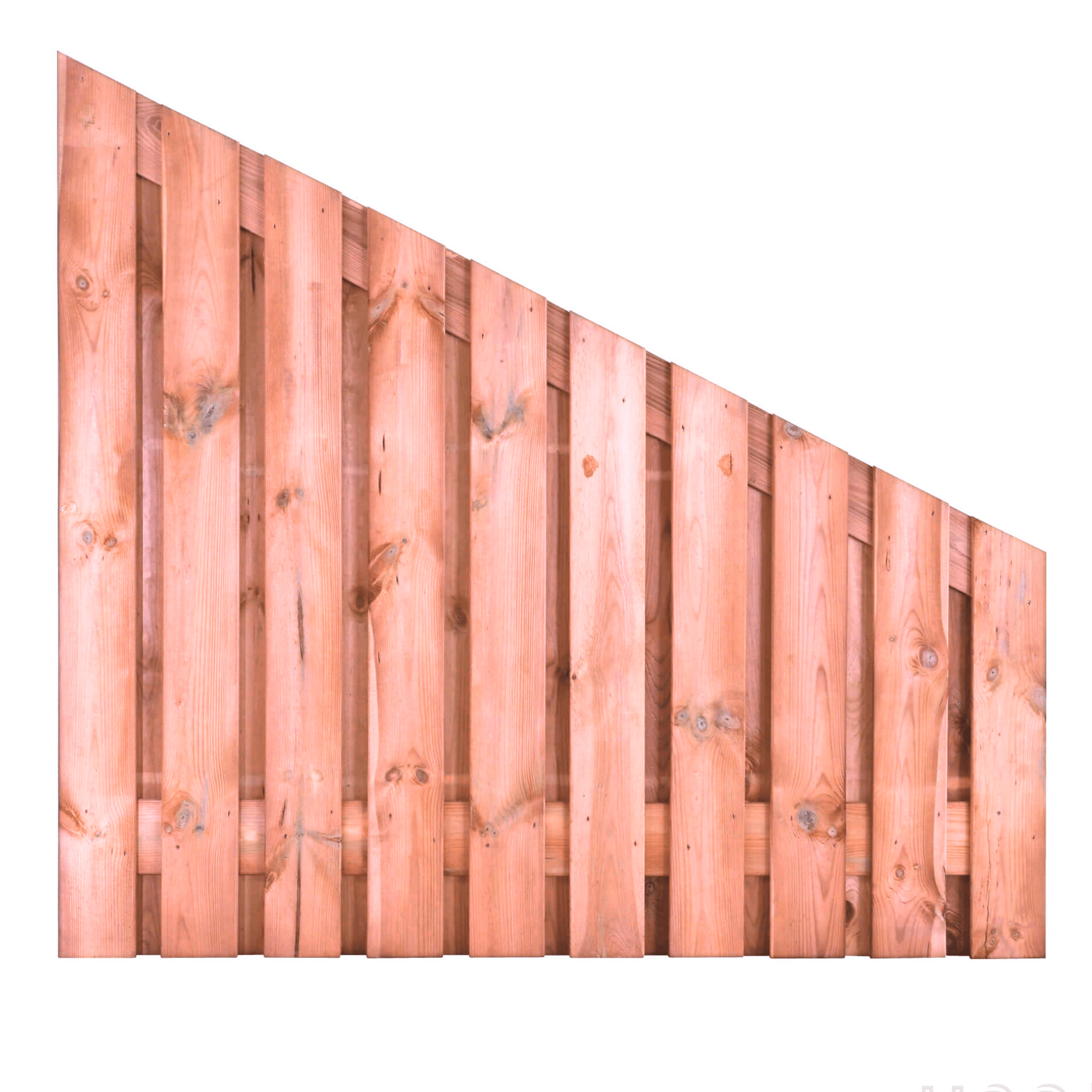 Dit overgangsscherm van 180 cm naar 90 cm is de perfecte overgang van een standaard naar een lage schutting. Denk hierbij aan het overgangspunt van achtertuin naar voortuin.