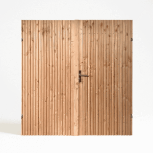 Deze uitvoering wordt onbewerkt geleverd, waardoor de poort zijn originele kleur en nerftekening behoudt. Douglas hout staat bekend om zijn sterkte en natuurlijke duurzaamheid. Onbehandeld zal het hout op natuurlijke wijze vergrijzen; desgewenst kan het worden afgewerkt met olie of beits om de kleur langer te behouden.